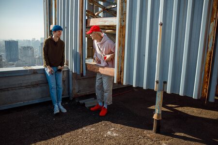 Construction workers are pouring water on the roof of the building, teamwork concept.