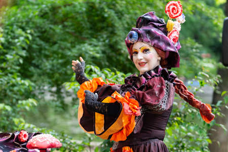 Bucharest, Romania - May 23,2018, Sweets seller, Living Statues, Street Theater Festival,Cismigiu Park