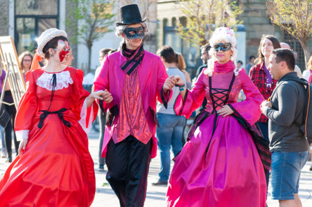 Timisoara, Romania - March 31, 2017: People dressed in vintage victorian clothes at the CheckArt Carnaval