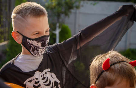 Children celebrate Halloween dressed up in costumes. Selective focus. Kids.