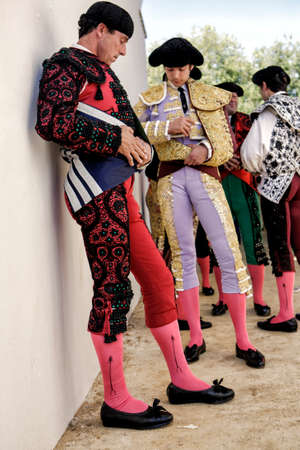 Baeza, Jaen province, SPAIN - 15 august 2009 Bullfighters at the paseillo or initial parade Bullfight at Baeza bullring, Baeza, Jaen province, Andalusia, Spain