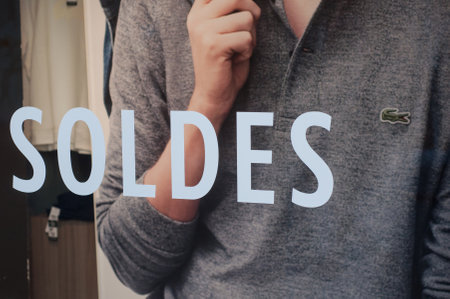 Mulhouse - France - 9 January 2019 - closeup of discount sign