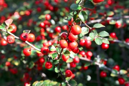 Autumn cotoneaster bush with red berries.