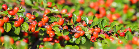 Cotoneaster bush with red ripe berries on the branches.
