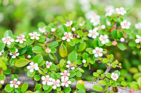 Few-flowered cotoneaster branch with flower - Latin name - Cotoneaster nitens