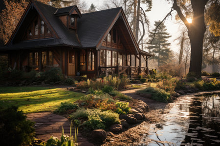 Scandinavian style cottage in autumn with afternoon light professional photography
