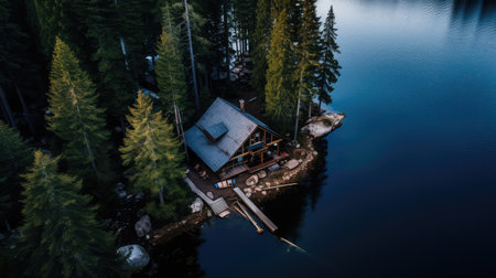 Serene Oasis: Captivating Landscape Photography of a House Encircled by Woods and Tranquil Waters --