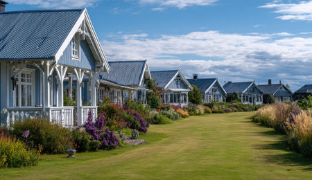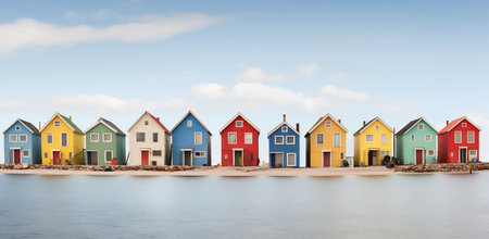 Colorful Coastal Residences A Vibrant Row of Houses with Traditional Architecture and Style.