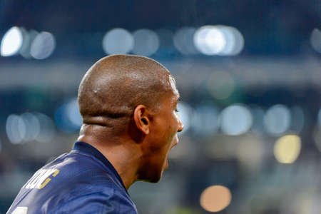 Turin - Nov 7, 2018: Ashley Young 18 emotionally reacts. Juventus - Manchester United. UEFA Champions League. Matchday 4. Allianz stadium.