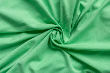 Light green fabric on green background with copy space. Light green fabric texture. Crumple light green fabric