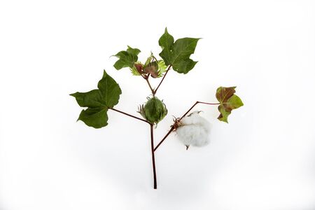 solitary cotton plant bloom on a white backdrop