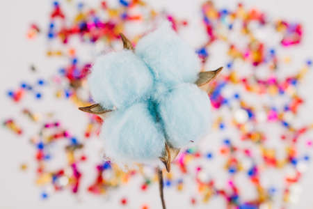 a blue cotton flower on colorful background