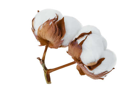 large branch of ripe cotton on a white background