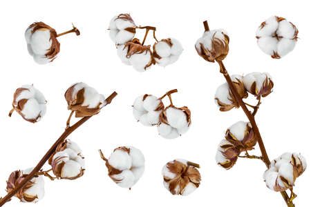 Cotton branch isolated on white background. White cotton flowers.