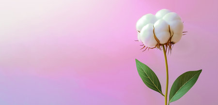 Banner with cotton branch on a pink pastel background. Minimal concept with copy space.