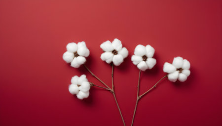 cotton branch on red background with copy space