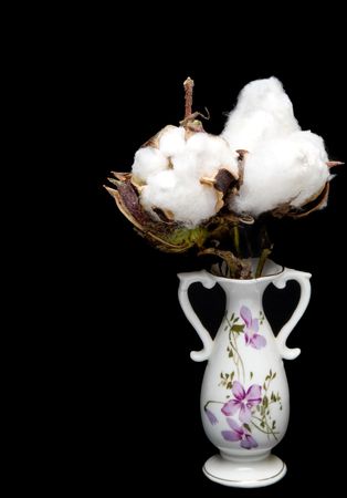 Dry cotton flower over black background