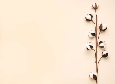Beautiful cotton branch on color background