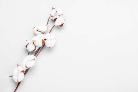 Branch of cotton flowers on light background