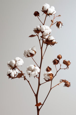 Cotton plant branch with open bolls on a neutral background