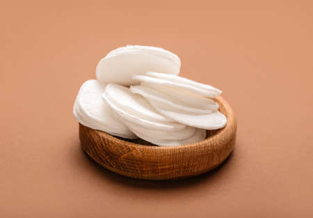Cotton pads on color background