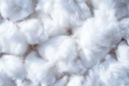 Soft white cotton fibers softly layered, showcasing natural texture and purity in delicate strands illuminated by gentle light. Generative AI