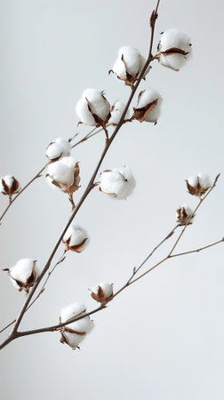 Cotton plant branch with open bolls on a neutral background