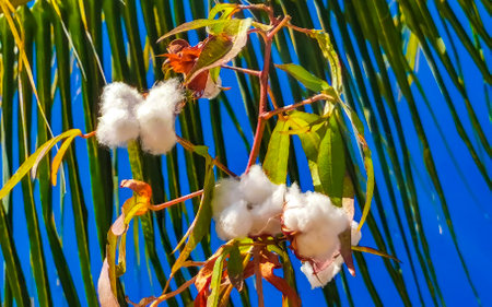 White beautiful cotton on tree or plant in Zicatela Puerto Escondido Oaxaca Mexico.