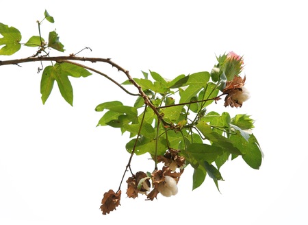 Cotton branch flower and leave isolated on white background
