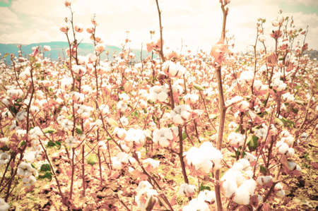 Cotton field background ready for harvest under the Israel sky macro close ups of plants. Retro style