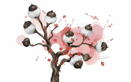 Cotton tree. Watercolor painting on white background. Vector illustration.