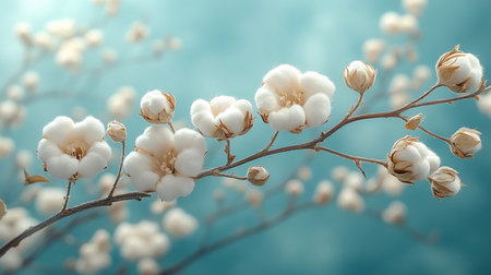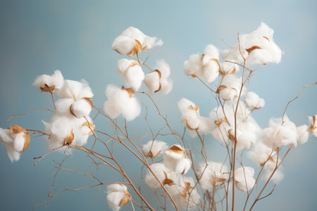 Cotton Branches on a Soft Blue Background. Generative ai. High quality illustration
