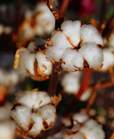 Dry inflorescences of cotton. Macro photo. The texture of cotton fibers.