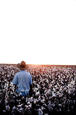 Men, farmers at a cotton plantation farm for industrial - textile use , ready to harvest. high quality photo