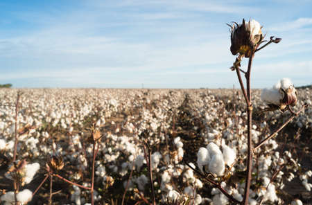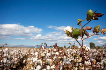Closeup of nature on Cotton Fields, Cotton Farming Industry, Sustainable Fashion concept.