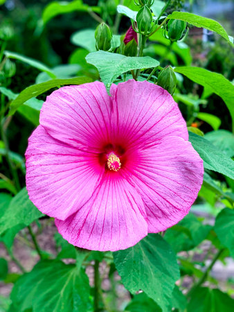 Close up of Rosa mallow flower in the graden