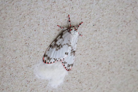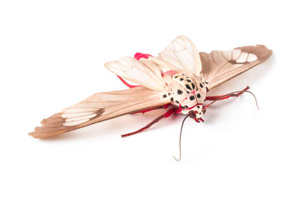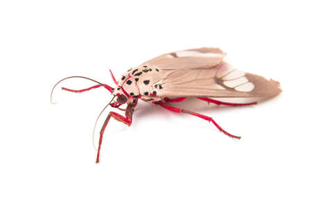 Close up of Tiger moth (Barsine cuneonotatus) on white screen, flash fired