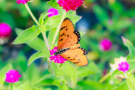 Plain Tiger Butterfly, orange butterfly, clinging to the flower in nature.