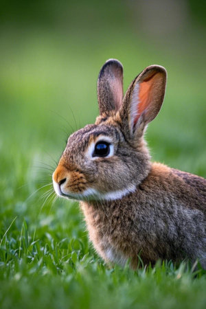 A young rabbit with sparkling eyes curiously observes the world around her, capturing the essence of innocence and wonder.