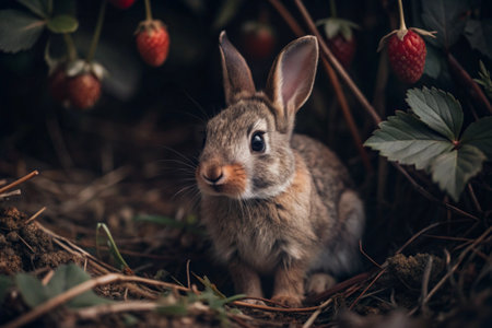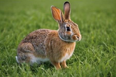 Fluffy rabbit ear in focus, sitting alert generated by artificial intelligence