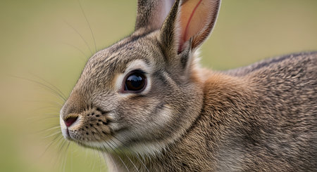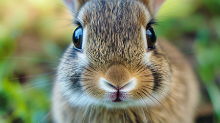 Vivid image of a wild rabbits face with detailed fur texture and whiskers