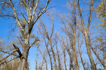 Poplar grove. Forest of trees with yellow leaves in autumn.