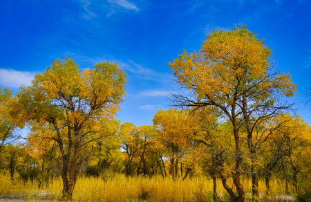 Poplar trees in autumn season, Ejina, Inner Mongolia, China