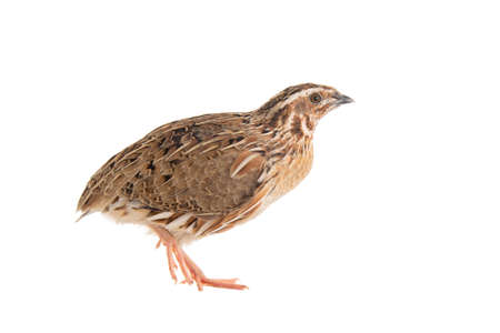 Wild quail, Coturnix coturnix, isolated on a white background.