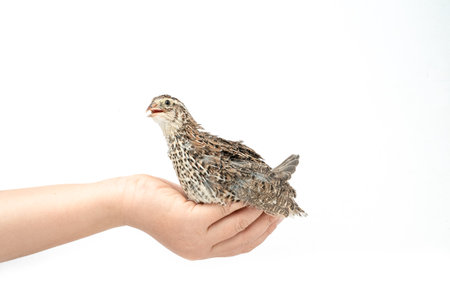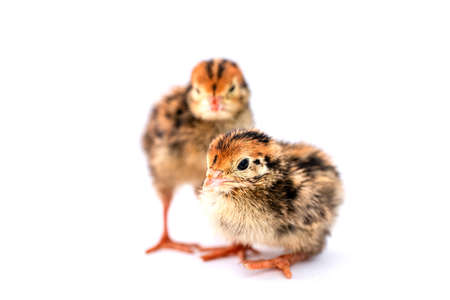 Japanese quail on a white background. A bird that lays the Golden eggs.