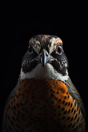A closeup shot of a pheasant isolated on a dark backdrop. AI-generated.
