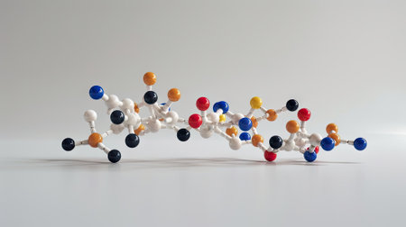 Dive into molecular science with our illustration of the phenylalanine molecule against a light blue background. Explore chemical wonders
