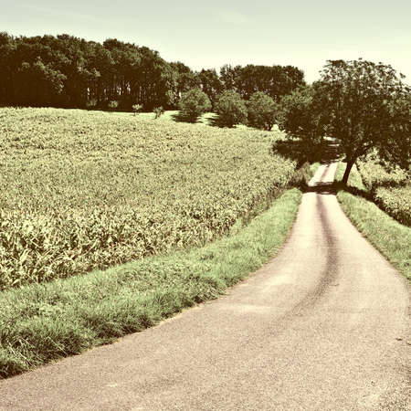Landscape summer rural scene in France, region Burgundy. Road and nature in old europe. Countryside road in Burgundy.