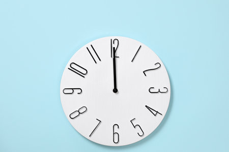 Clock hanging on wall ticking showing twelve hours