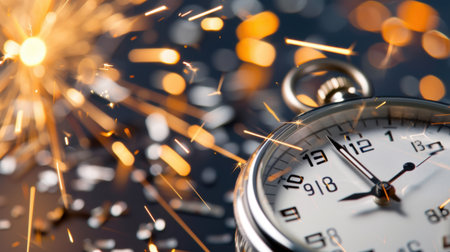 A captivating close-up of a vintage stopwatch surrounded by dynamic sparks, highlighting the beauty of timekeeping and mechanical design, evoking themes of precision and craftsmanship.